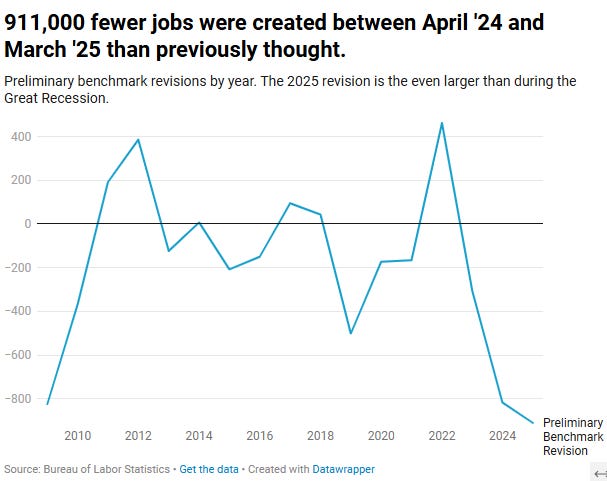 “Over 900,000 jobs they claimed the economy added, were…..revised data shows just how corrupt the previous head of the Bureau of Labor Statistics was.“