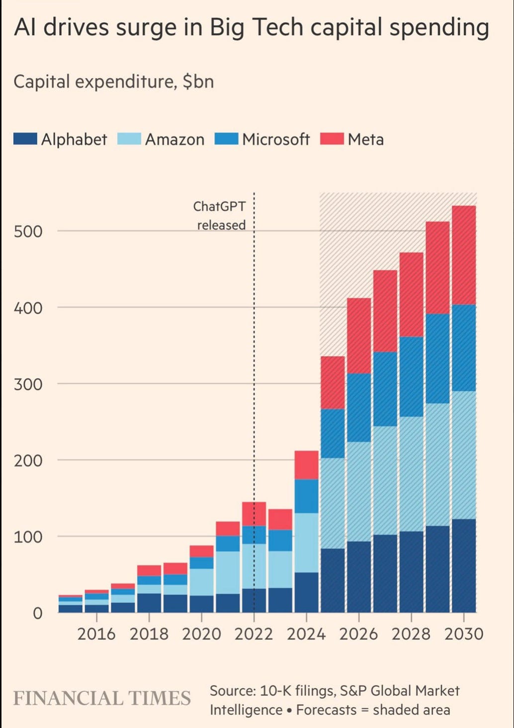 Scott Choppin Note: We are at the front edge of massive capital investment cycle. Not listed on the chart below, are AI-only companies and their collaborators: “The total spending plans involving OpenAI and its collaborators across various projects and infrastructure could approach $1 trillion over multiple years, reflecting the scale and ambition of current AI investments”